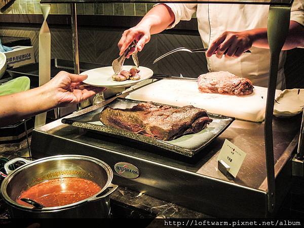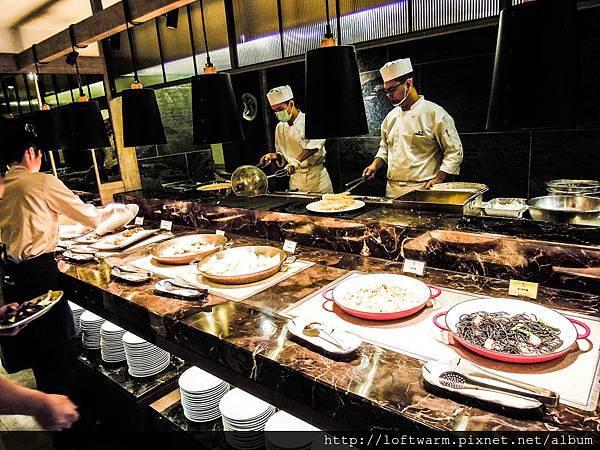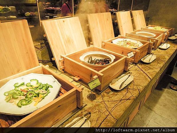 有蝦子、鴨肉、冷麵、涼拌菜、炙燒魚片、貝類...很豐盛!