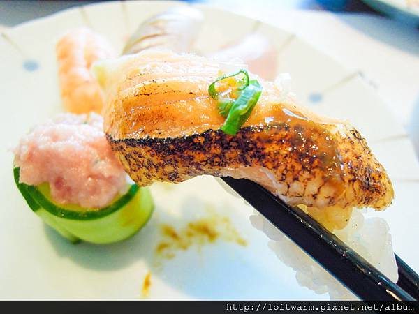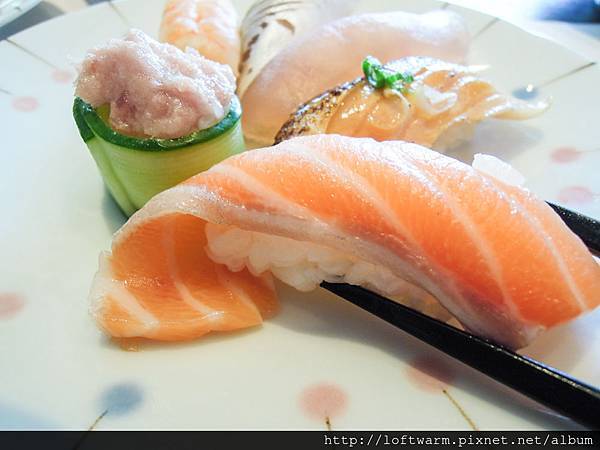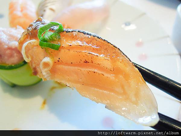 花壽司、鮭魚握壽司、炙燒鮭魚握壽司、